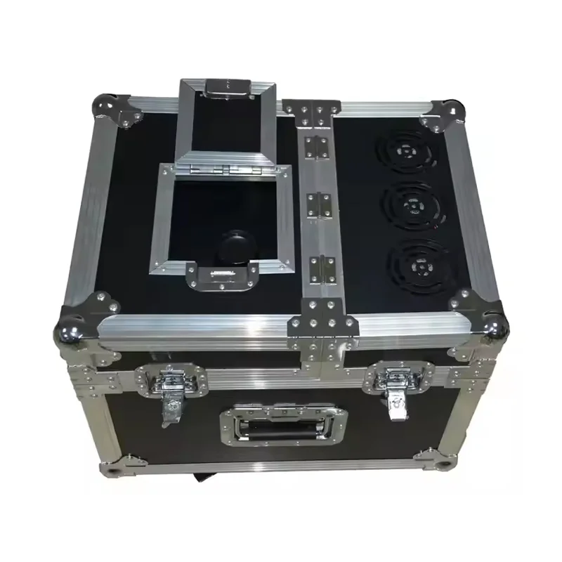 The Smoke Machine Flight Case is part of our Pro Flightcases range, custom-made by our expert team at the MaxCases factory. These flight cases are designed to offer the highest level of protection for your equipment, making them the preferred choice for professionals worldwide. This particular model is built with heavy-duty Penn Elcom fittings and features a standard Black Hexaboard finish. All Pro Flightcases come with a lifetime guarantee.